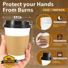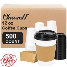 Clawsoff 12 oz Coffee Cups with Lids Sleeves, 500 Pcs White Disposable