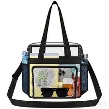 Clear Bag for Stadium Events 12×6×12 Clear Gym Tote Bag with Front Pocket for Concert,Sport,Festival. #48 in Gym Tote Bags. Color: Black. Date First Available : February 9, 2026. Fabric Type: PVC.