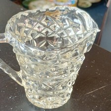 Clear Pressed Glass Diamond Pattern Pitcher Glossy Finish Decorative Handle additional preview