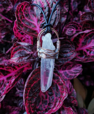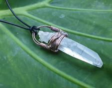 Lemurian Clear Quartz Crystal. Raw untreated stone. Pendant Talisman Necklace. Wear this Crystal Pendant for Pendant Length Approx Pendant Width 3rd Eye + Crown Chakra. Astral Projection.