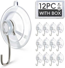 Clear Suction Cup Hooks 12 Pack, 1.77 Inch Heavy Duty Wall Hooks with Strong 10