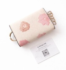 **Title:** COACH 5-Key Case with Keyring Floral Design **Description:** Brand: COACH Model: 5-Key Case Retail Price: ¥22,000 This is a limited edition design from Japan. Features a floral pattern in white and pink. **Size:** Width: 10 cm Height: 6.5 cm **Specifications:** Closure: Snap Interior: 5 Key Hooks, 1 Keyring, 1 Card Pocket **Material:** Leather This item was purchased at a Coach store in Japan. It has been used a few times and is stored carefully at home. Please note there may be minor signs of use on the hardware. Includes care instructions for aftercare at Coach stores across Japan.