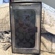 The Coach Black Leather Logo Textured Fitted Case is specifically designed for the iPhone 13 Pro. Made of high-quality leather with a textured finish, this fitted case features the signature Coach logo on the back. The sleek black and gray color combination adds a touch of sophistication to the design while providing protection for your phone. This hard case is a perfect accessory to keep your device safe and stylish. ALSO A GREAT COLLECTORS PIECE AS WELL!