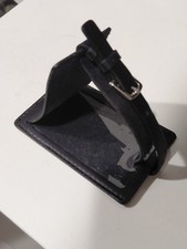 Authentic Coach leather luggage tag in black. Clean, minimal design with buckle strap. Pre-owned, good condition with light signs of use consistent with normal wear. Great replacement tag or subtle travel accessory. See photos for details.