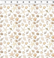 Coastal Cottage Starfish Seashells Y4744-1 White fabric BTY
