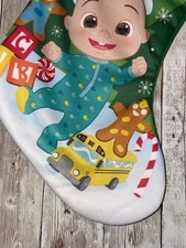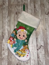Cocomelon JJ Christmas Holiday Stocking 20" Hanging Loop Green Back White Cuff