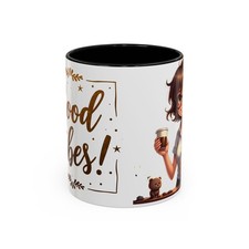 Warm, cheerful, and a little playful — this ceramic Accent Coffee Mug brings cozy mornings and bright coffee breaks to life. Lettering with celebratory accents reads "Good vibes!". (or similar), adding a sprinkle of optimism to each sip.
