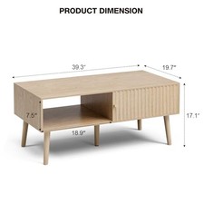 Coffee Table with Storage, Boho Dining Table with Sliding Fluted Door and Solid Wood Legs, Small Coffee Tables for Living Room, Oak. 【Effortless Cleaning & Quick Assembly】This living room table features a smooth surface that ensures cleanliness and freshness with just a simple wipe using a damp cloth.