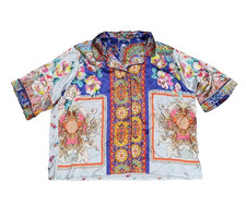 Collar Silk Shirt in Multicolor Print Medium A004263
