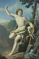 Color Lithograph Religious 19th St JOHN BAPTIST In The Desert