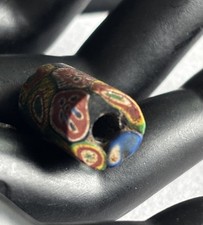 Colorful African Venetian Glass Trade Bead Vintage Tubular Green Yellow Red