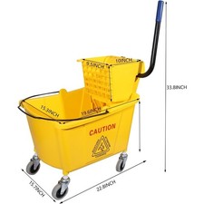 Commercial Mop Bucket with Press Wringer on Wheels Includes 1 Mop 35 Quart