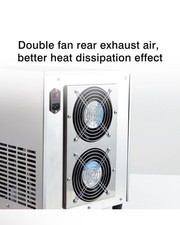 Air-Cooled Snowflake Ice Machine. This air-cooled snowflake ice machine features a powerful 360 W compressor that achieves rapid cooling within 40 seconds. It boasts two 3 L capacity baskets, capable of producing up to 176.4 lbs.