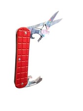 This versatile compact multi-tool is an essential addition to any toolbox, glove compartment, or everyday carry. Featuring a durable red checkered handle, it integrates several useful functions into a small, portable design. Tools include sharp scissors, a convenient bottle opener, a can opener, and a small flathead screwdriver. The integrated pocket clip ensures secure and easy carrying, making it readily accessible for various tasks. Ideal for DIY projects, camping, emergencies, or daily utility needs. Lightweight yet sturdy construction provides reliability when you need it most. Perfect for professionals and hobbyists alike.