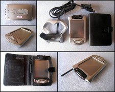 Released in 2001 and in working condition. Includes charging and data transfer cradle and original leather case (note : power adapter is not included).