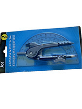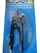 Gray Compass Protractor Set With Pencil. Includes: 1 Protractor, 1 Compass, 1 Pencil. Pencil Included. Color: Gray. 2 Piece Set. Type: Compass/Protractor Set.