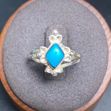 Composite Turquoise Scroll Statement Ring Solid Sterling Silver 925 Size 6.25