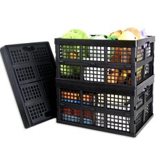 Manufacturer CONLI. Fold and flip both sides when not in use,Stackable Design: The stackable plastic storage crates can be stacked either open or folded to save space. It can also be used as a fruit and vegetable storage box.