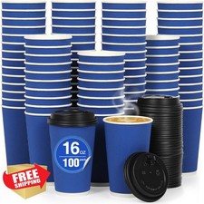 Coolcap 100 Pack 16oz Coffee Cups Lids Straws Navy