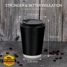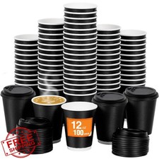 Coolcap 12oz Disposable Coffee Cups Lids Straws 100 Pack Black