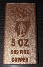Copper BIGFOOT INGOT 5 Oz .999 FINE COPPER