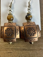 Type: Earrings Style: Dangle / Drop Material: Copper Tone Metal Stone: Tiger Eye Beads Color: Copper / Brown / Gold Closure: Fish Hook Theme: Southwestern / Boho / Tribal Department: Women Vintage: Yes