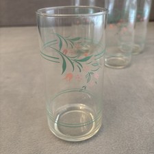 Corelle Rosemarie 16 OZ Glassware Tumblers Set Of 4 Floral Dainty MCM Vintage
