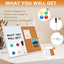 Easy to write on and erase without leaving stains, smooth surface for repeated use. This versatile set includes a 16" x 12" corkboard and a dry erase whiteboard, perfect for any workspace. Featuring a double-sided design, one side showcases eco-friendly engineered wood and high-quality cork, while the reverse side features a smooth white surface made of engineered wood and white iron.