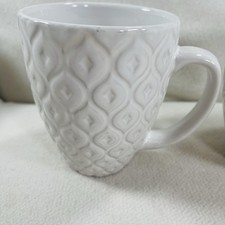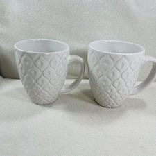 Coventry White Stoneware Coffee/ Tea Mugs Textured Pattern Set 2