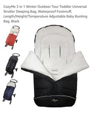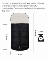 NWT CozyMe 3 in 1 Winter Outdoor Tour Toddler Universal Stroller Sleeping Bag, Waterproof Footmuff, Length/Height/Temperature Adjustable Baby Bunting Bag, Black
