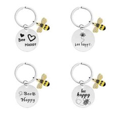 Creative Yellow Bee Be Happy Key Ring Keyfob Car Keyring Keychain Xmas Gift