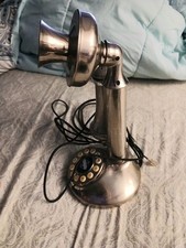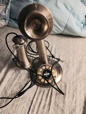 The CROSLEY Candlestick Phone - CR64 is a retro push button telephone with a 1920's style design, perfect for collectors of vintage telephones. This unique phone features a candlestick shape and is sure to add a touch of nostalgia to any home decor. Made in China, this collectible piece is a great addition to any collection of radios, phonographs, TVs, or other telephones from the 1970s onwards. With its classic design and brand name quality, the CROSLEY Candlestick Phone is a must-have for anyone looking to bring a piece of the past into their modern home. bought it online for my mother in law and she didn't want it. she likes gold.the ear piece fell off so it can be glued on. dropper price drastically.
