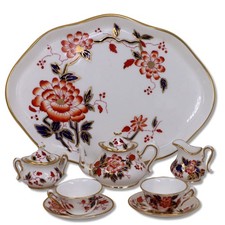 Crown Staffordshire 10pc Mini Doll Imari Coral Bone China Tea Set 1900's