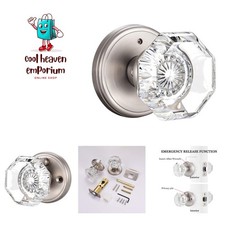 Crystal Glass Door Knobs Interior, Modern Bathroom Bedroom Door Knobs with Lo... additional preview