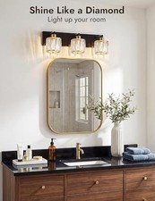 The light it emits is highly eye - friendly, making it an ideal choice for the whole family. Crystal Vanity Lights for Bathrooms, 3 Light Bathroom Vanity Light, Black and Gold Bathroom Light Over Mirror, Modern Bathrooms Lights Fixtures-UL Certificated(Exclude Bulb).
