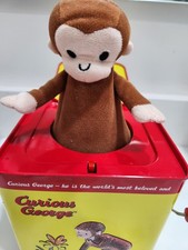 Curious George Manual Crank Jack In The Box Vintage, Yellow Red