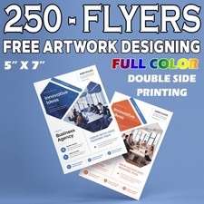Custom 250 Flyers - 5"x7 "- Full Color 2 Side Printing - Free Design