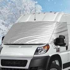 Date First Available: August 12, 2025. Custom Fit Silver Windshield Sun Shade Cover Compatible with 2014-2025 Ram ProMaster 1500 Van for Privacy Blockout UV Reflector Snow Protection. Note: Install with the silver smooth side facing outwards and the black side facing inwards.