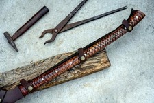This custom handmade Viking sword features a 28" carbon steel blade with a spear point, ideal for hunting and survival purposes.