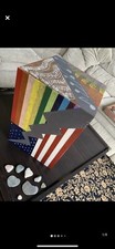 United States of A-musica! Land of the free and home of the bass. Show your patriotism and your pride with this beautifully painted, fully-functional floor speaker. Now music doesn't just have to sound good, it can look good too. Note and lyrics painted on top are from actual songs: White part: Star Spangled Banner Colored part: All You Need Is Love You’ve Got A Friend In Me We Are Family Give Me Love Heal The World Dimensions: 17.5" - H 12" - W 12" - D Please check my other listings for this speaker's partner (painted differently).