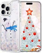 Fun and cute snowman pattern adds a playful touch. Features a snowflake glitter liquid design for a festive look. Supports wireless charging for convenience.