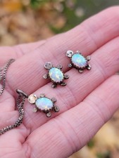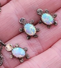 Cute Vintage Native American Sterling Silver Opal Turtle Necklace Earrings Set