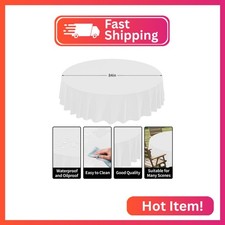 CXPSINC 8 Pack Premium Disposable Plastic Tablecloth 84" Round Table Cover for B additional preview