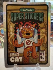 The Cynical Cat VeeFriends Spectacular Series Super Sticker Base Comic Insert 01 is a standard-sized trading card featuring the character Cynical Cat from the VeeFriends franchise. Manufactured in 2026, this English-language card is made of card stock and includes a sticker feature. It is a part of the 2026 Spectacular Series set, making it a unique addition to any non-sport trading card collection. This comic insert showcases the humor and charm of Cynical Cat in a fun and collectible format.