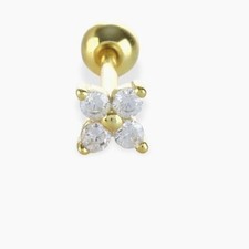 CZ Diamond Clover Screw Back Stud Single Gold Flat Back Earring Tragus Cartilage
