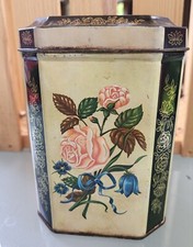 Daher Vintage Floral Tin Box Container Hinged Lid England Please see all pictures for best description
