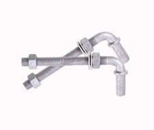 Made from high-quality and durable galvanized steel to ensure long lasting use and rust prevention. Nuts and washers for gate hinge are included. J-Bolt is 6" long overall with a thread length of 5.5".