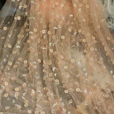 Daisy Flower Lace Fabric Voile Mesh Embroidery Tulle Skirt Curtain DIY Sheer