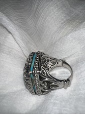 Dallas Prince Sterling Statement Ring With Filigree And Turquoise Stone Size 9