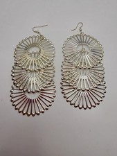 Dangle Drop Earrings Silver Tone Metal Multi-Circle Round Fashion